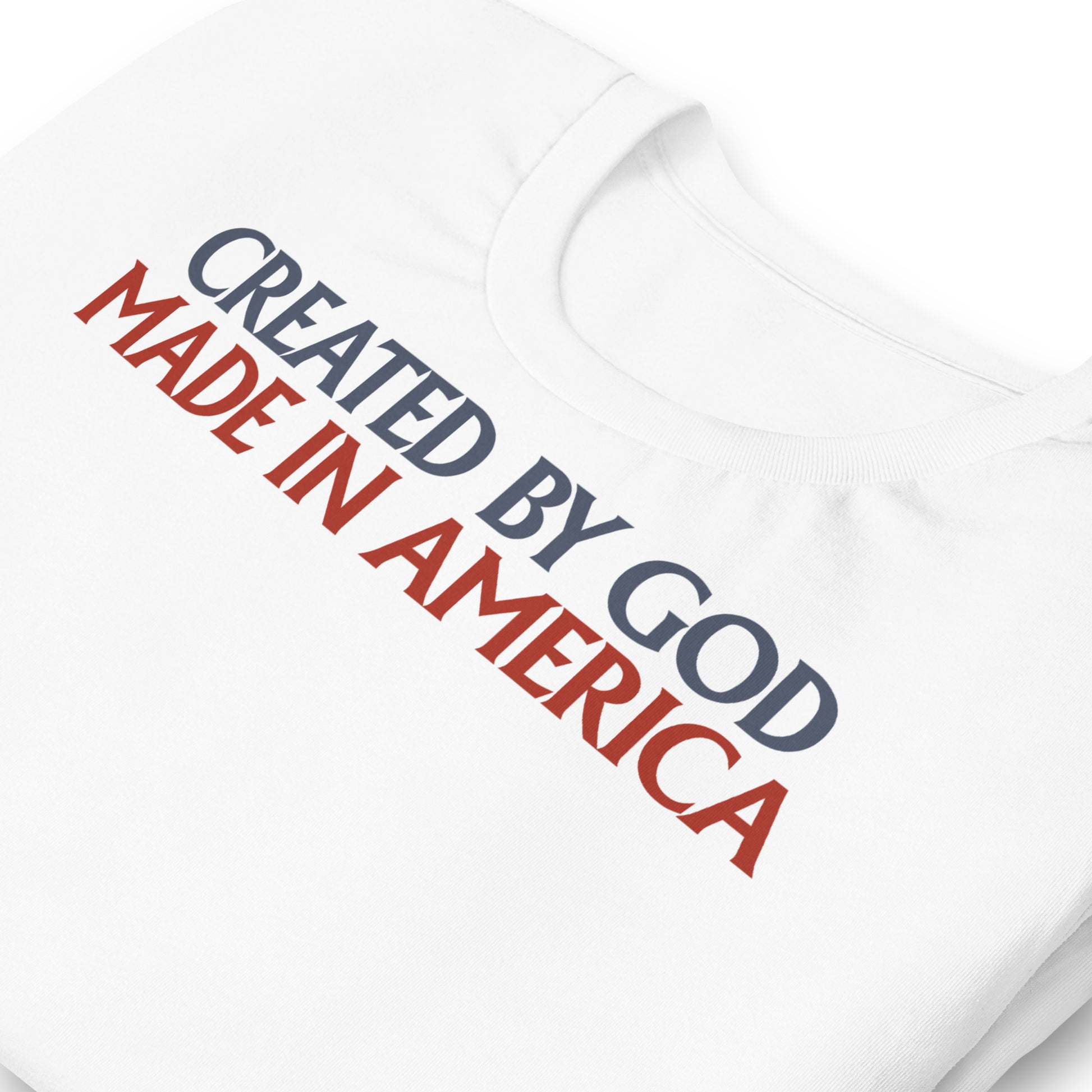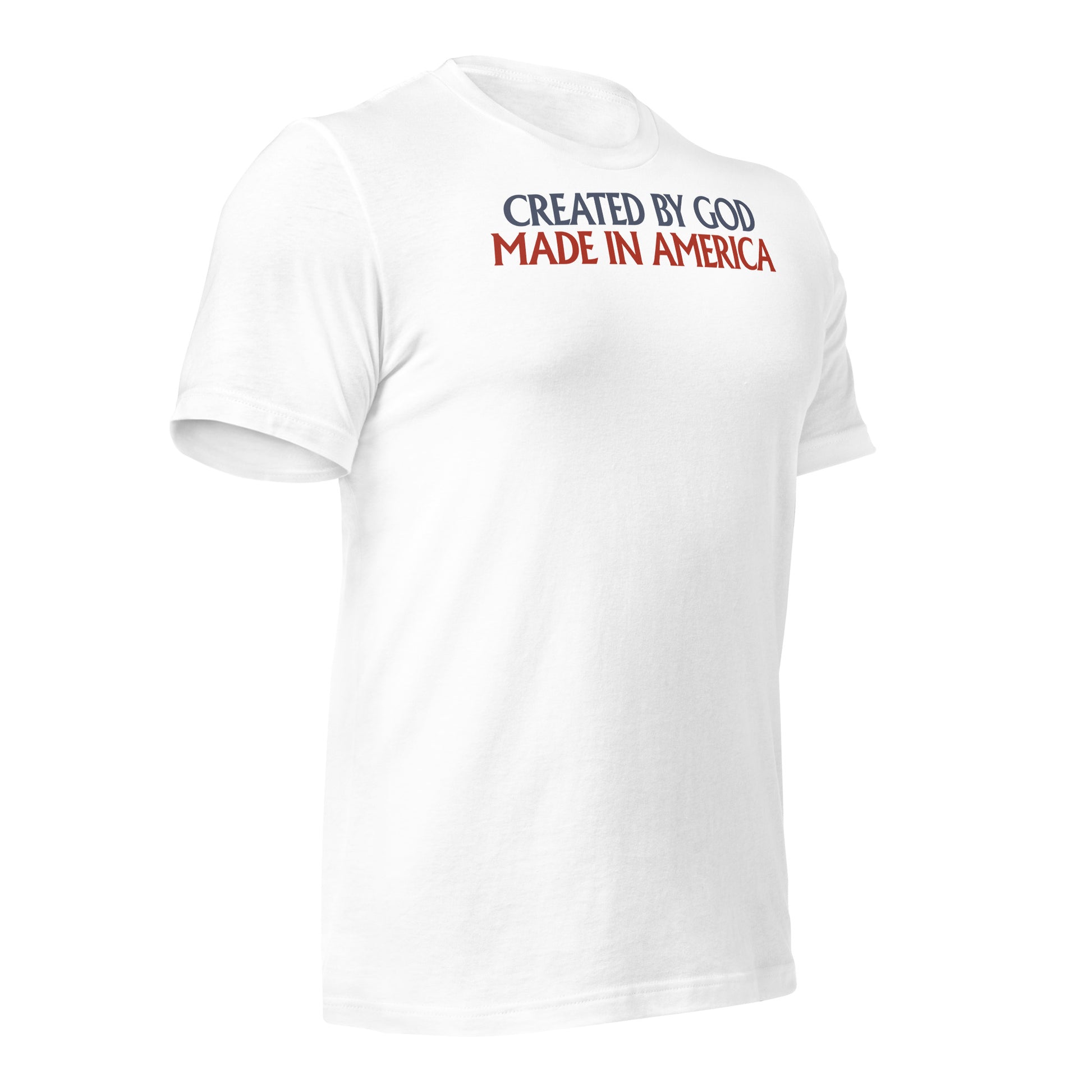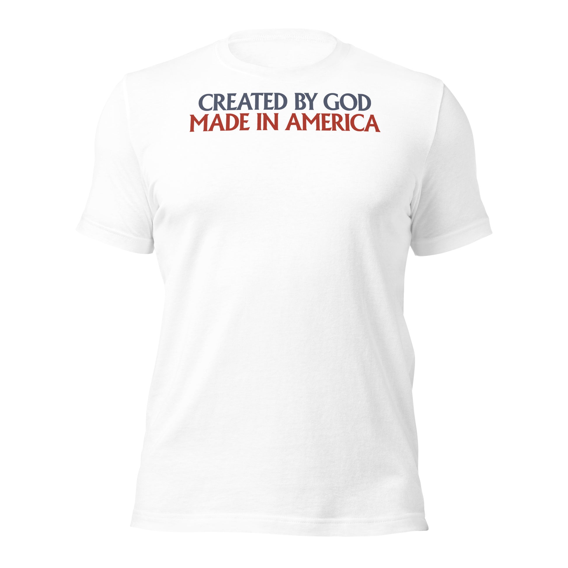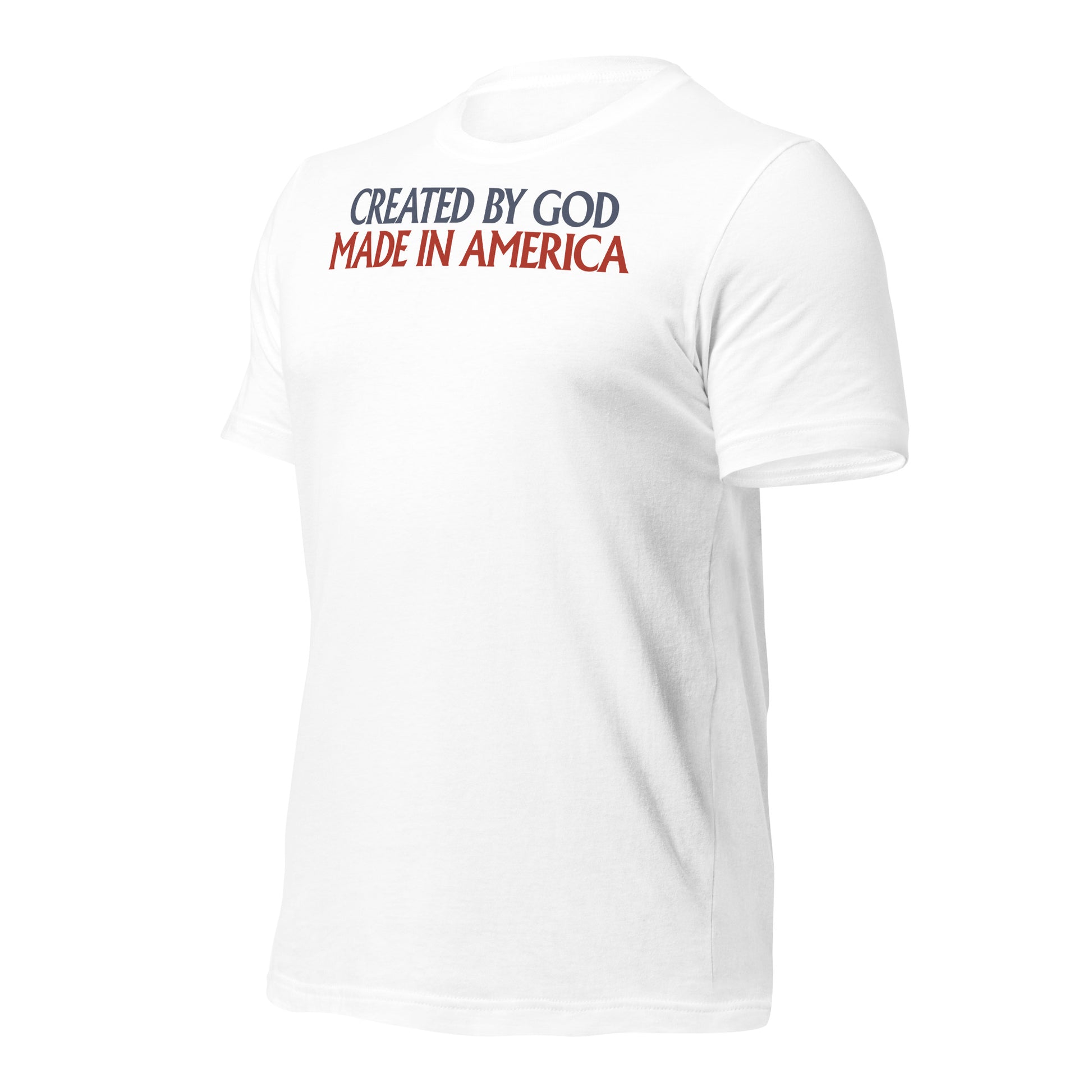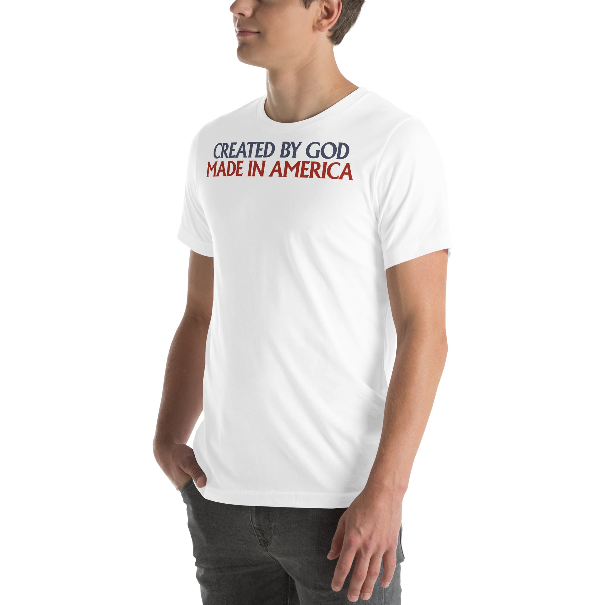Celebrate your Faith and Patriotism with our Created By God, Made In America Men's T-Shirt!