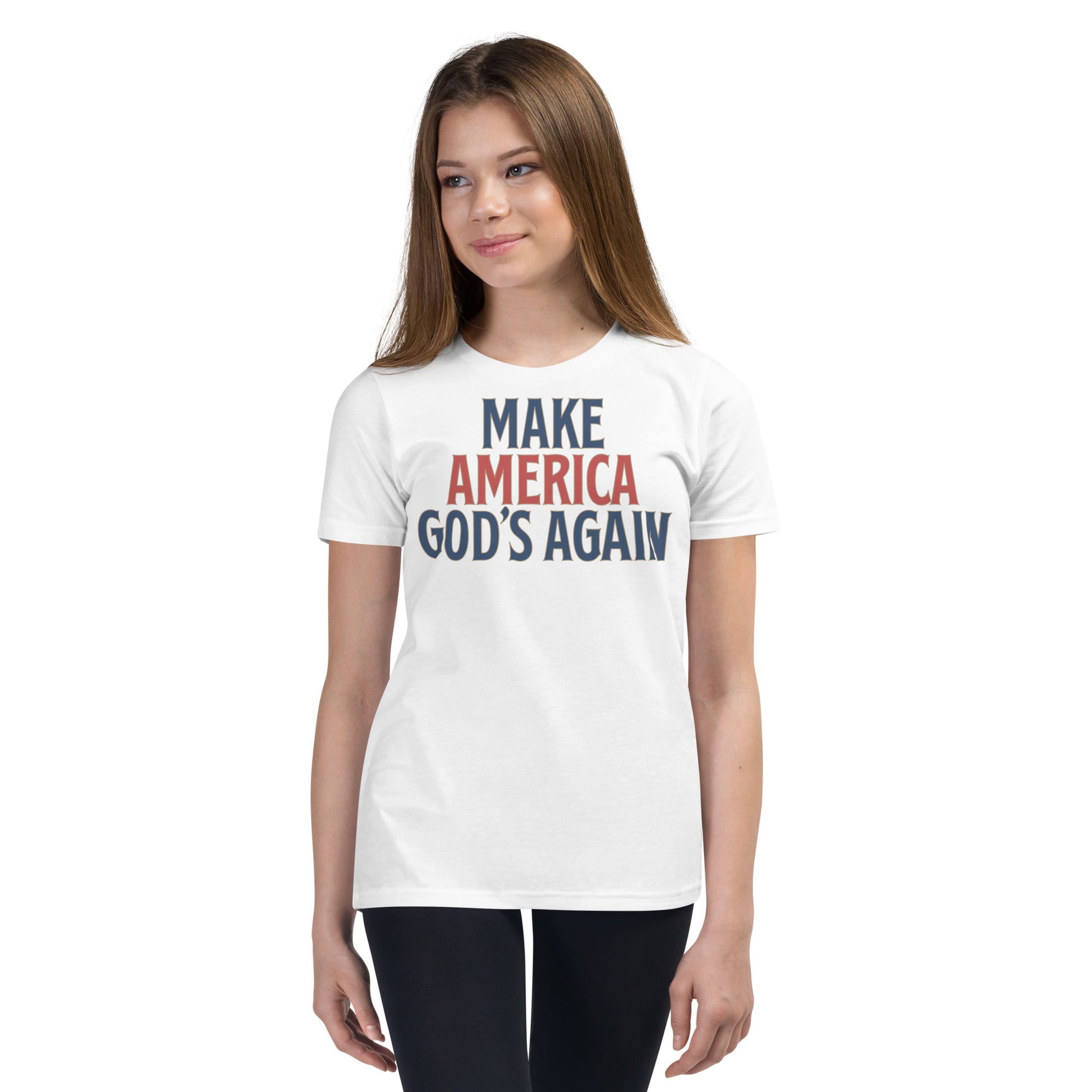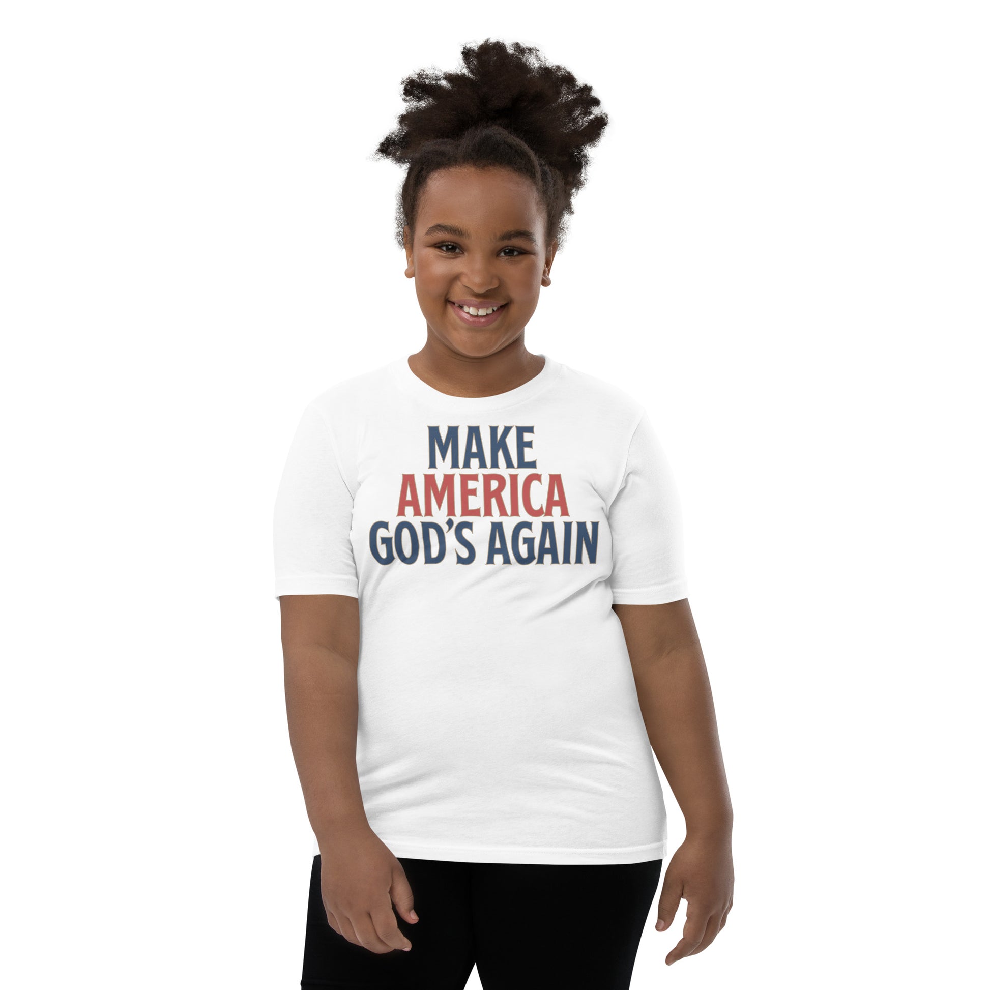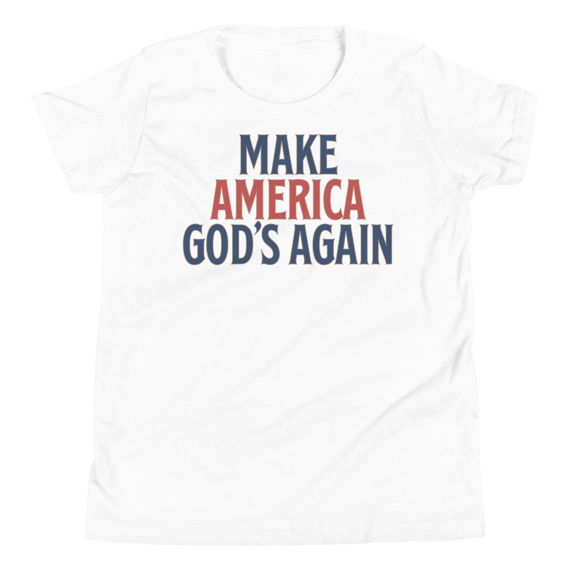 Inspire your child's love of God and Country with our Make America God's Again Patriotic Christian Kid's T-Shirt!