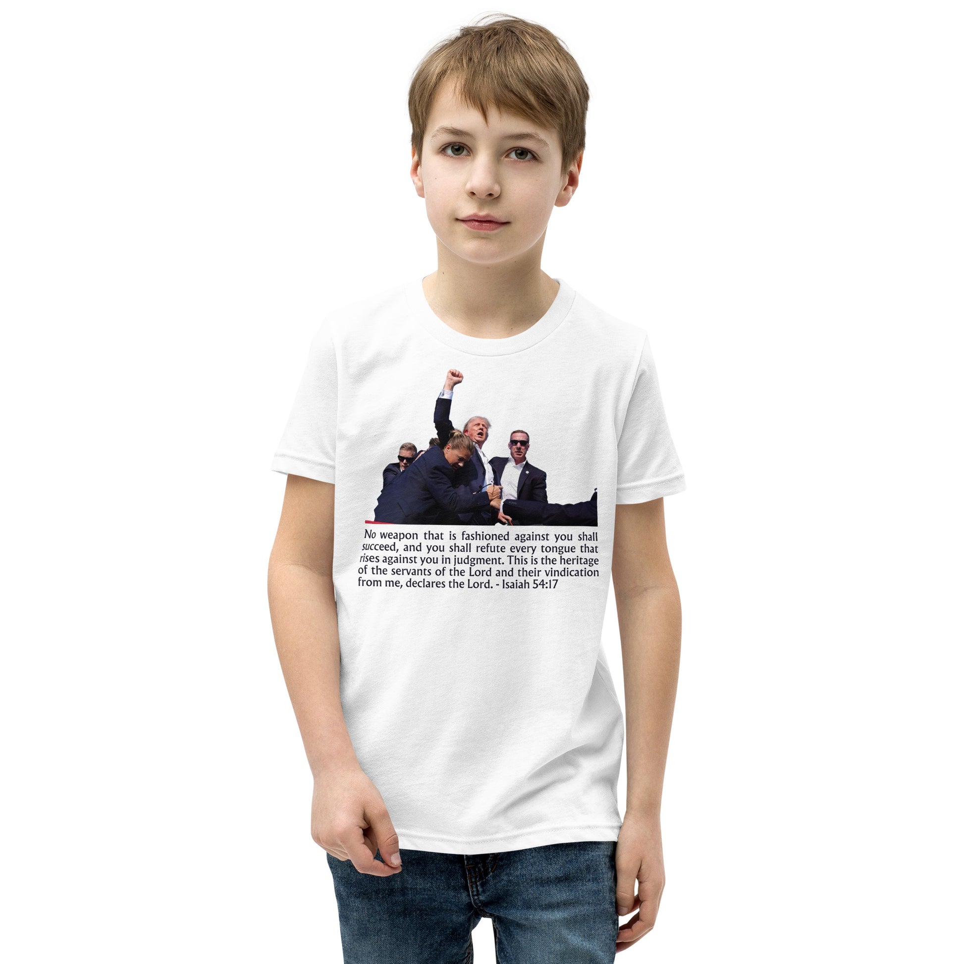 Ignite your child's faith and patriotism with our President Trump Isaiah 54:17 Kids T-Shirt.