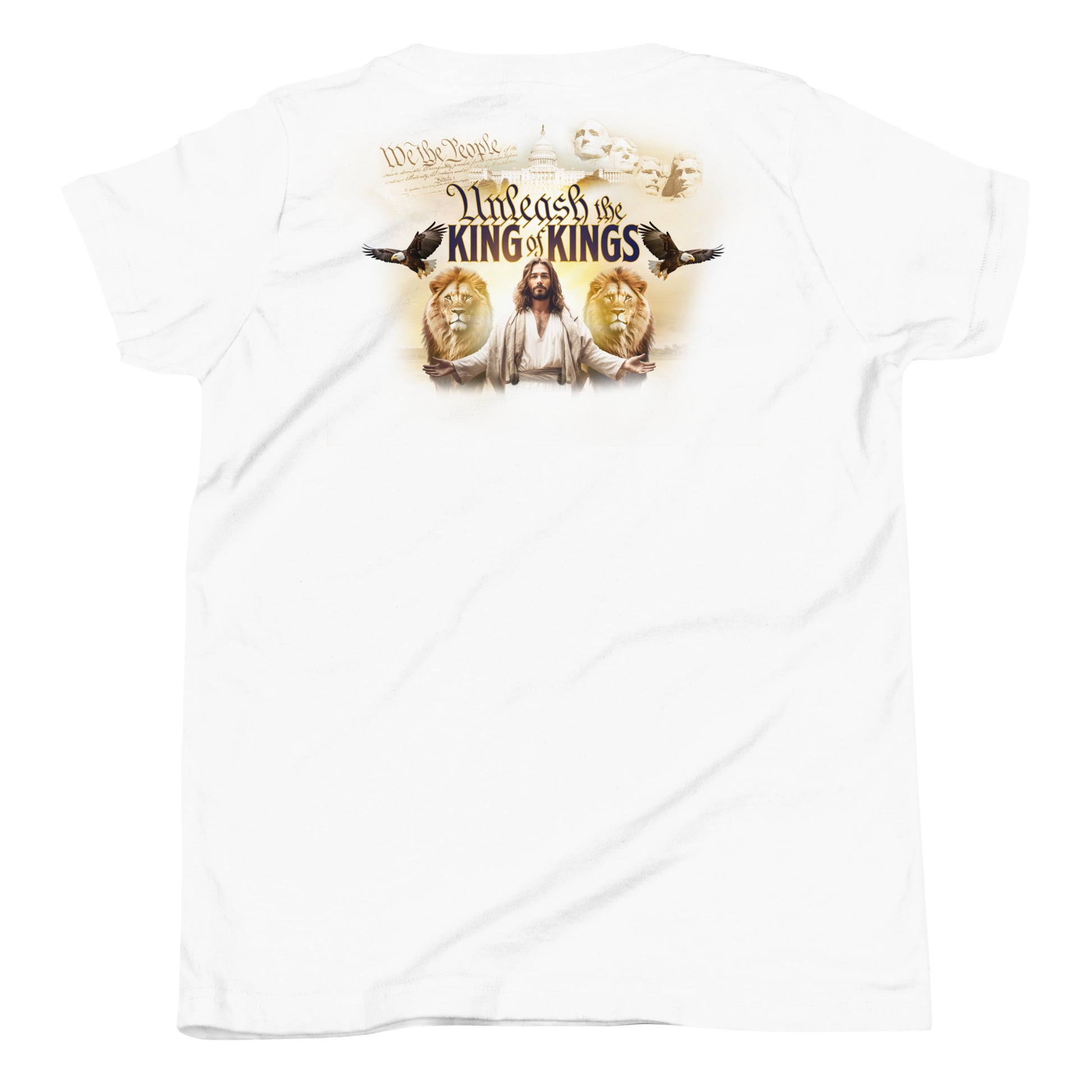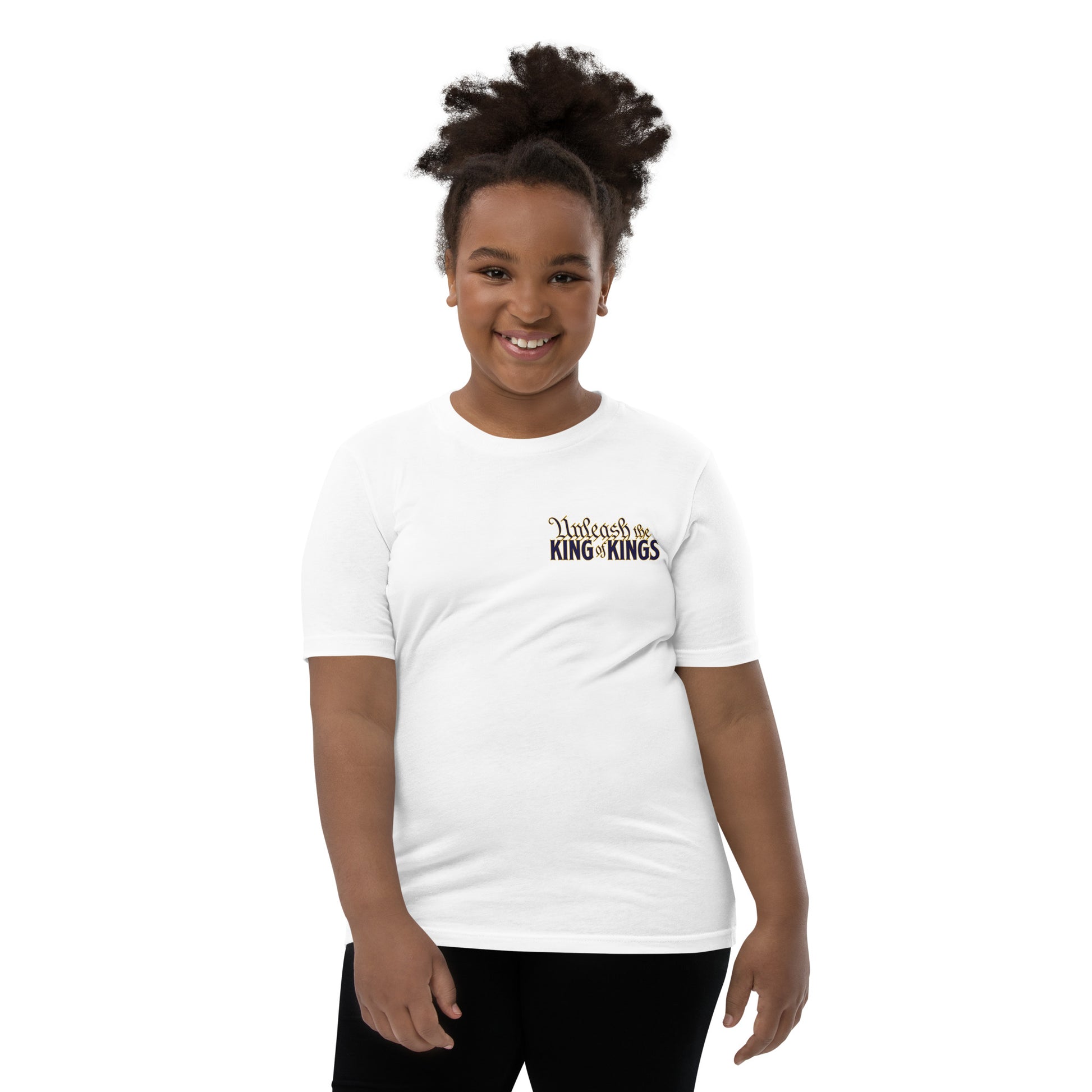Help your child's faith shine with our "Unleash The King Of Kings" Christian Kid's T-Shirt.
