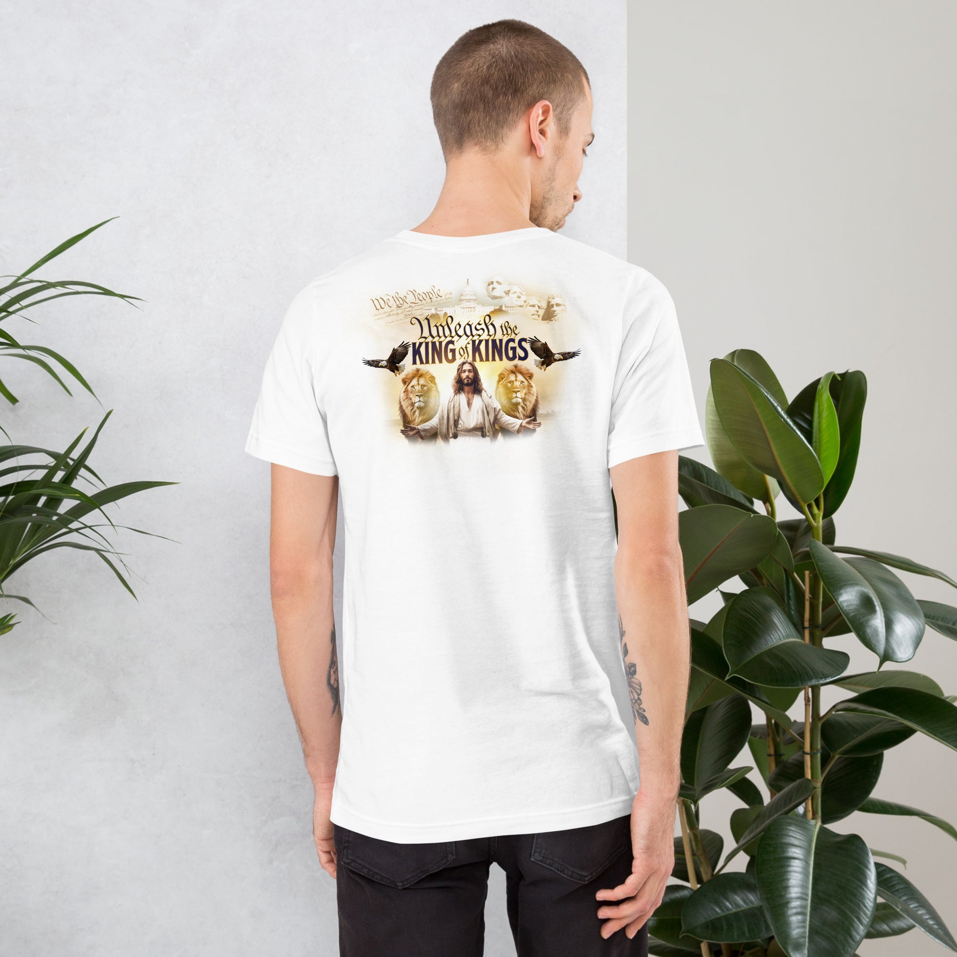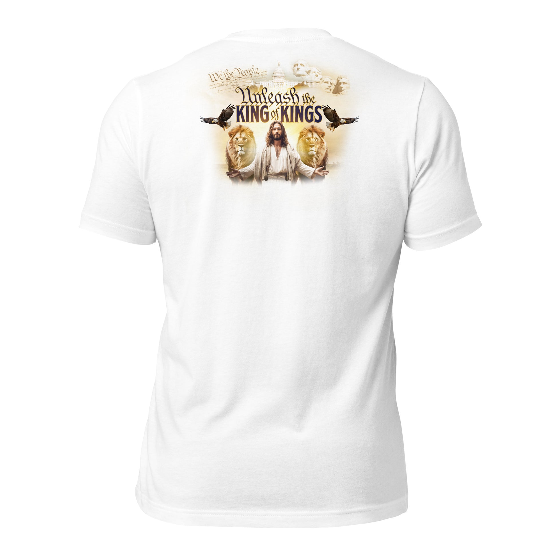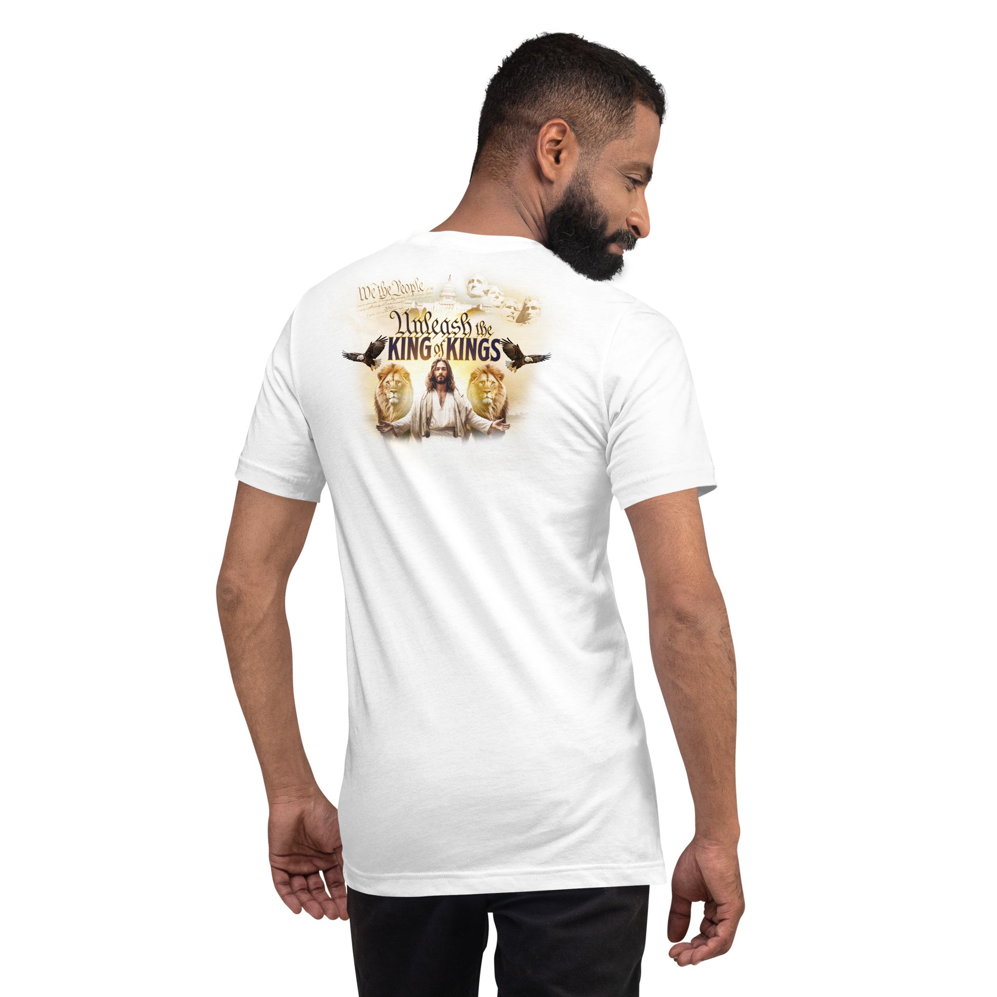 Join the movement to Make America God's Again with our Unleash The King Of Kings Christian Men's T-Shirt.